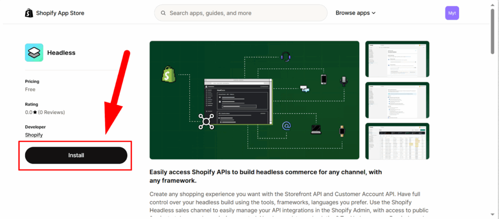 >> From “Enable Native Cart Drawer” Notification, select the “install headless by Shopify” button. This is a Shopify-built App, and it is free of cost; you will not be charged.